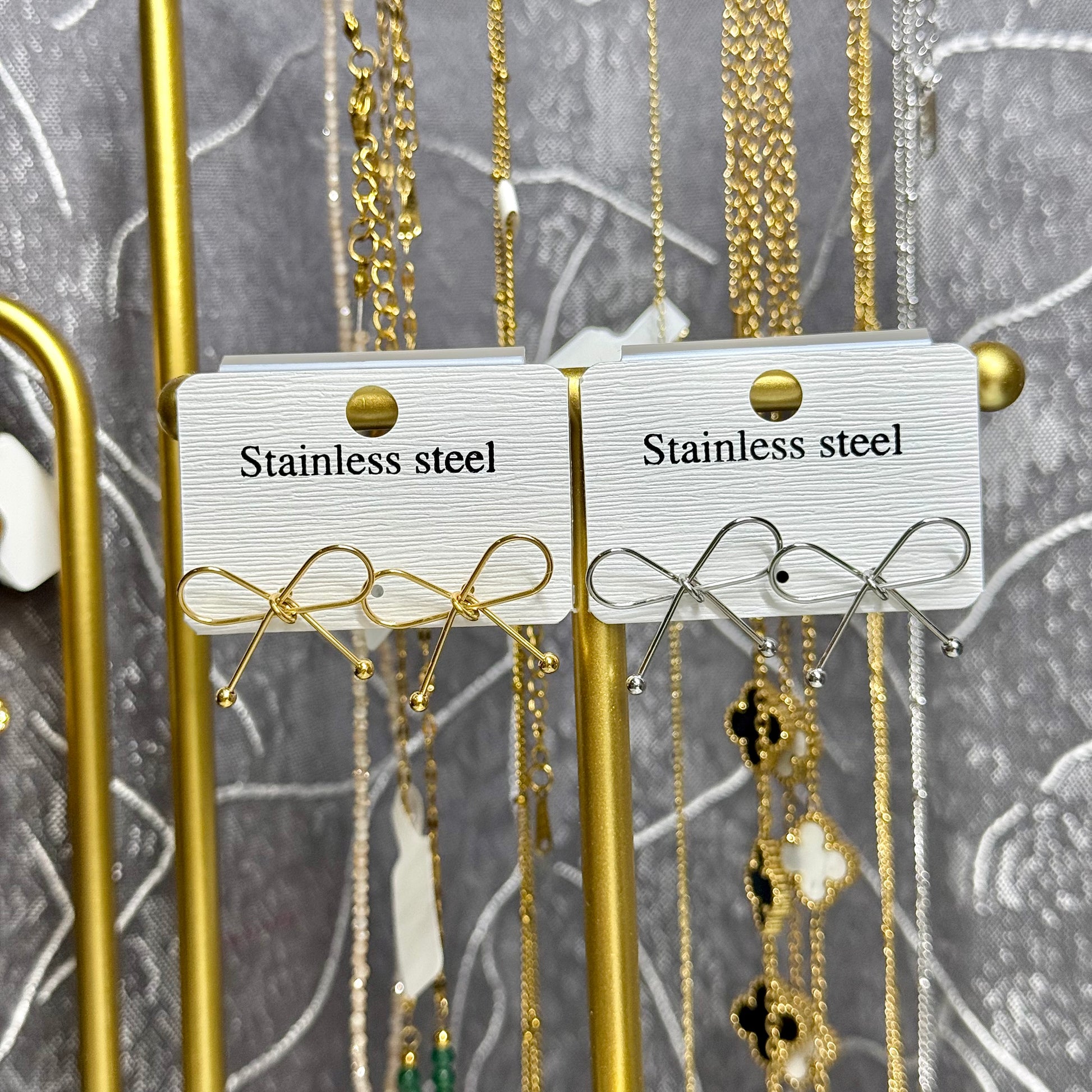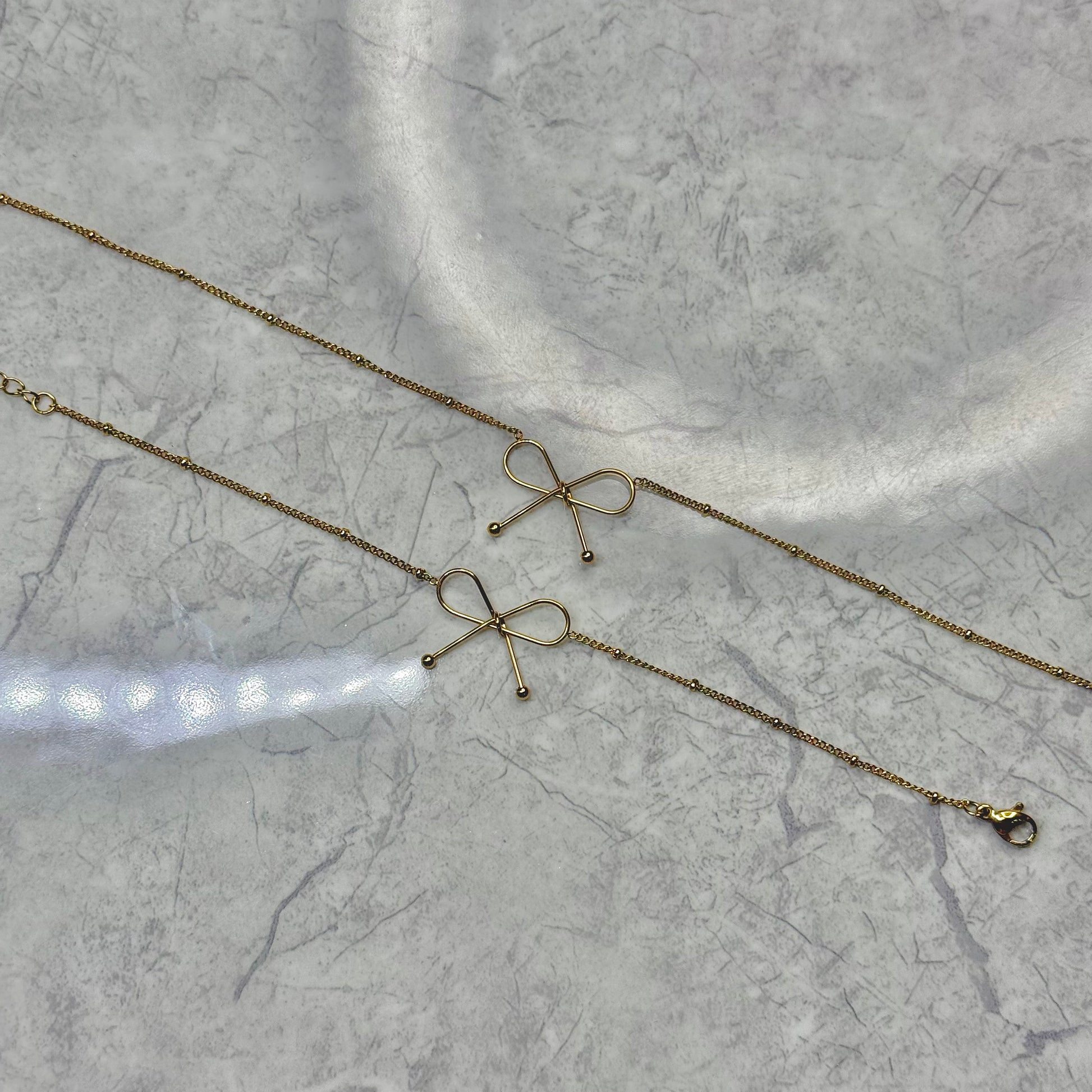 Collar, pulsera, aretes. S. Steel (enchapado en oro 14k) ajustable